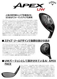 2022年1月に初代、2023年中盤に2代目が発売された「APEX UW」ですが、今回は、現在もスタッフプレーヤーやツアープロが多く使用している初代モデルをブラッシュアップしたスタイルとなりました。ほぼ2022年モデルを踏襲したヘッドシェイプは、操作性の高さを感じさせるコンパクトなもので、ソールには当時初登場となったステップ・ソールデザインも採用。抜群の抜けの良さを発揮します。