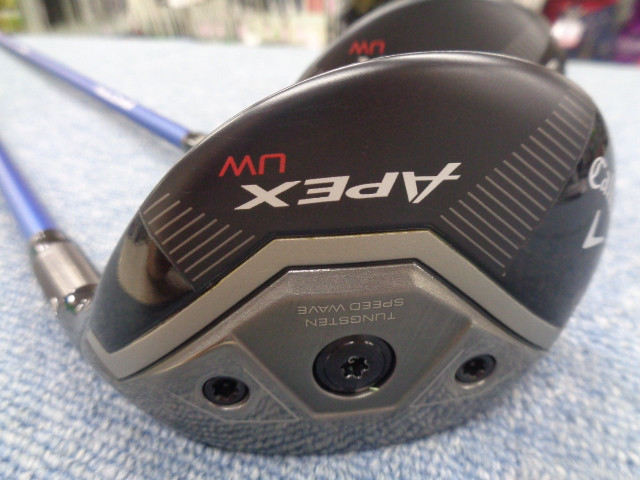 新しい「APEX UW」は前作同様、ロフト17度、19度、21度、23度を用意しています。ただし、前作などでは、2度刻みのロフト差により、距離のピッチがはっきり出にくかった面もあったということで、クラブ長さが変更されています。前作の17度と19度はいずれも41インチでしたが、17度を41.75インチ、19度を41インチに設定。同様に、40.5インチだった21度は40.25インチ、40.0インチだった23度は39.5インチです。つまり、番手間の差は0.75インチずつになっているということになります。